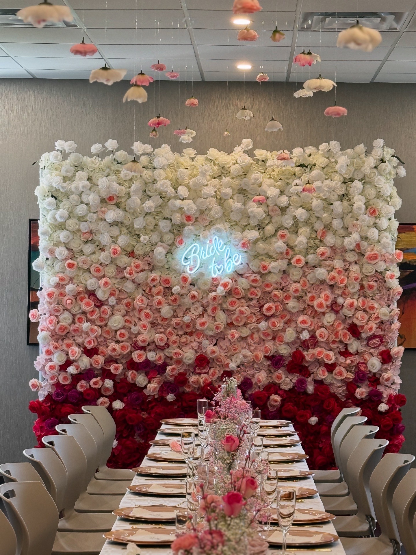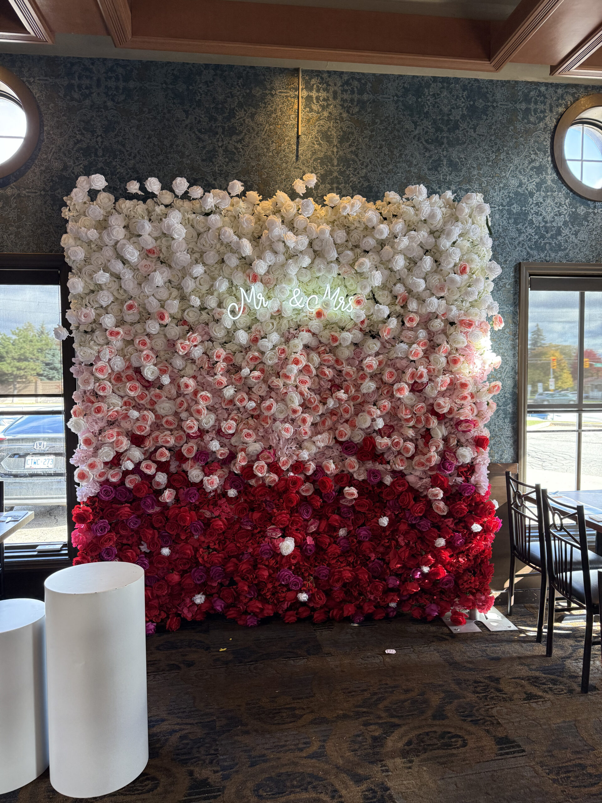 Starting at $250 | 8x8 ft (adjustable to 4 ft) Make a bold style statement with our gradient ombré flower wall backdrop in Toronto. Adjustable width: 4 ft to 8 ft Includes secure, heavy-duty stand Ideal for weddings, birthday parties, showers & photo booths 📍 Serving all of Toronto and the GTA – Contact us for rental availability.